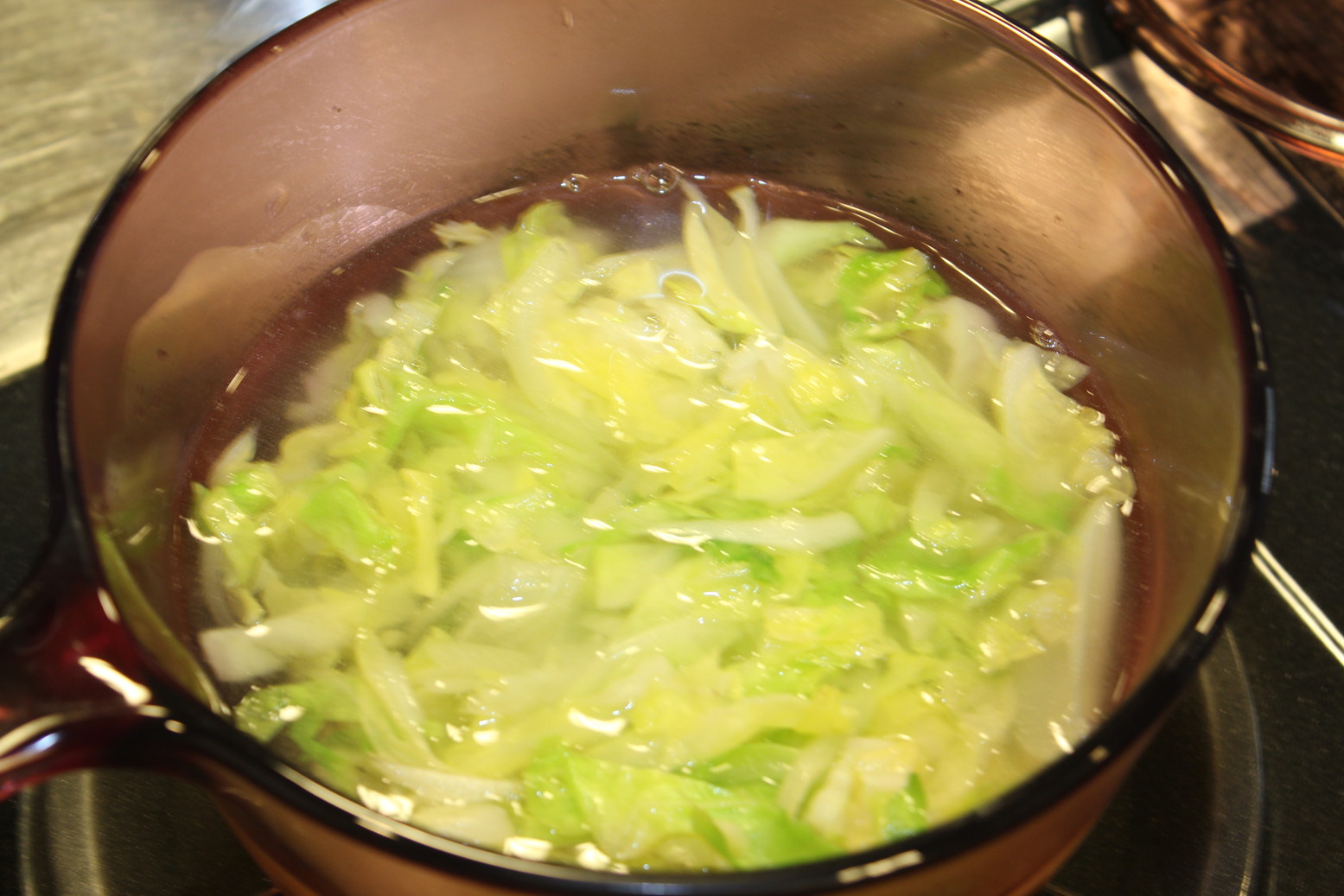 キャベツたっぷりのスープも作りました。これで栄養バランスが整います。