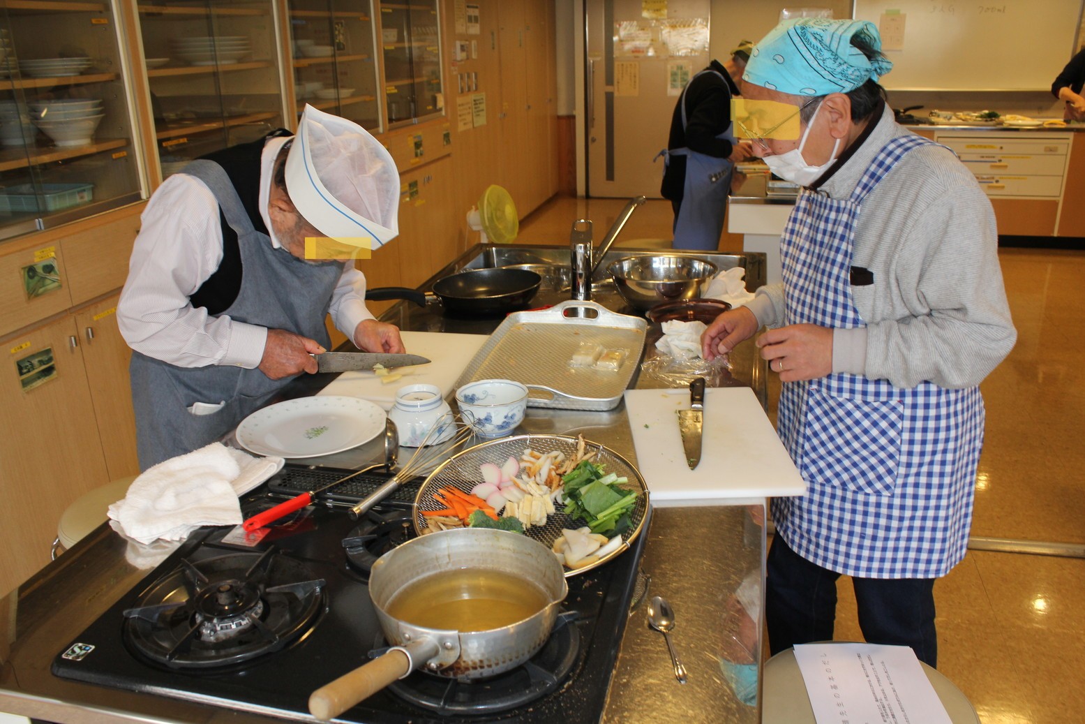 12月13日土曜日に、ベルブ永山4階調理室にて、第6回目の料理教室が行われました。今回はお正月にふさわしい料理を作りました。