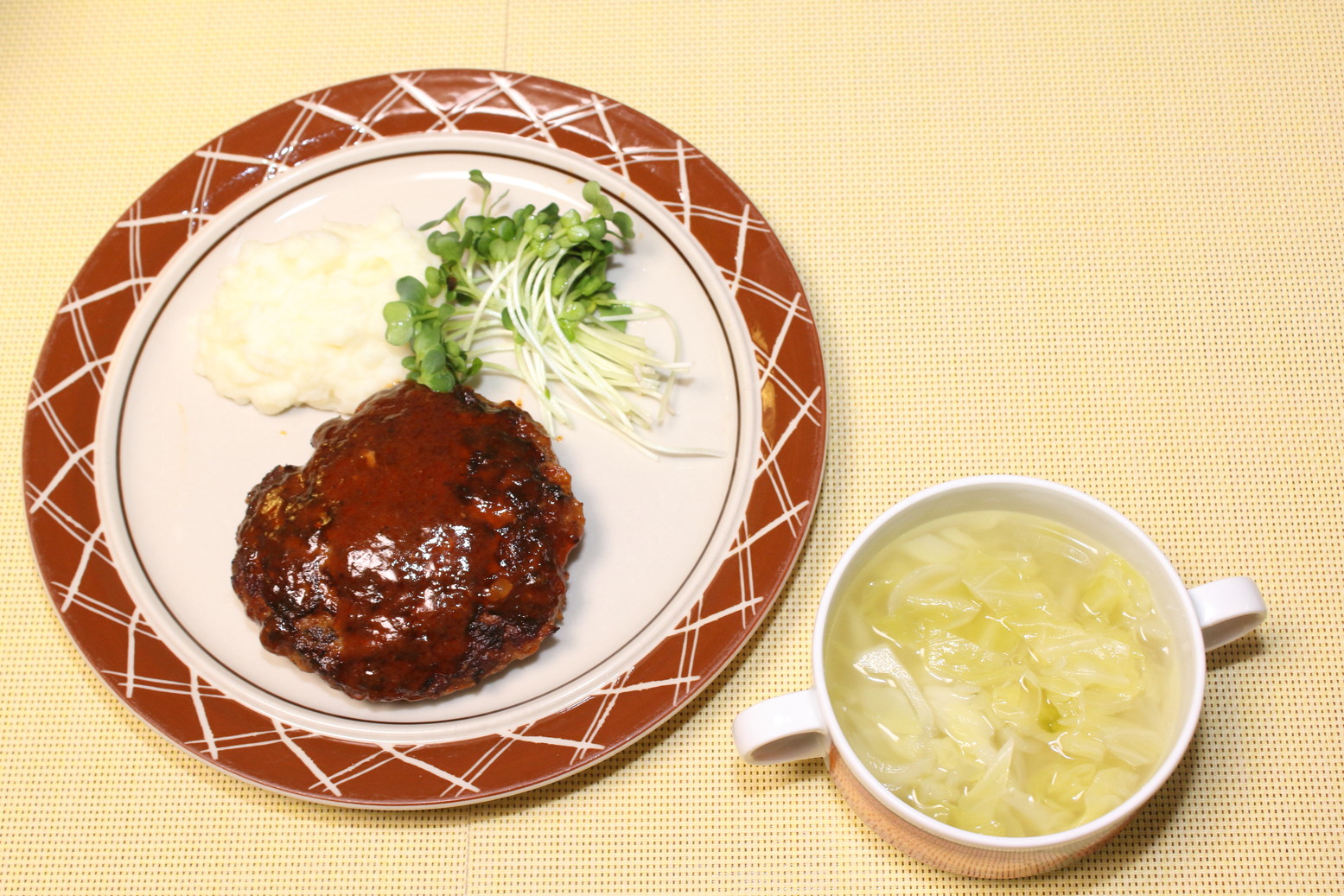次回4月11日は、煮込みハンバーグ、マッシュポテト添えを実施します。市販のハンバーグなどとは、比べものにならない美味しさです。自分で作れたら、満足度が大きい料理です。安価な挽肉に手を加えることで作る、贅沢料理です。