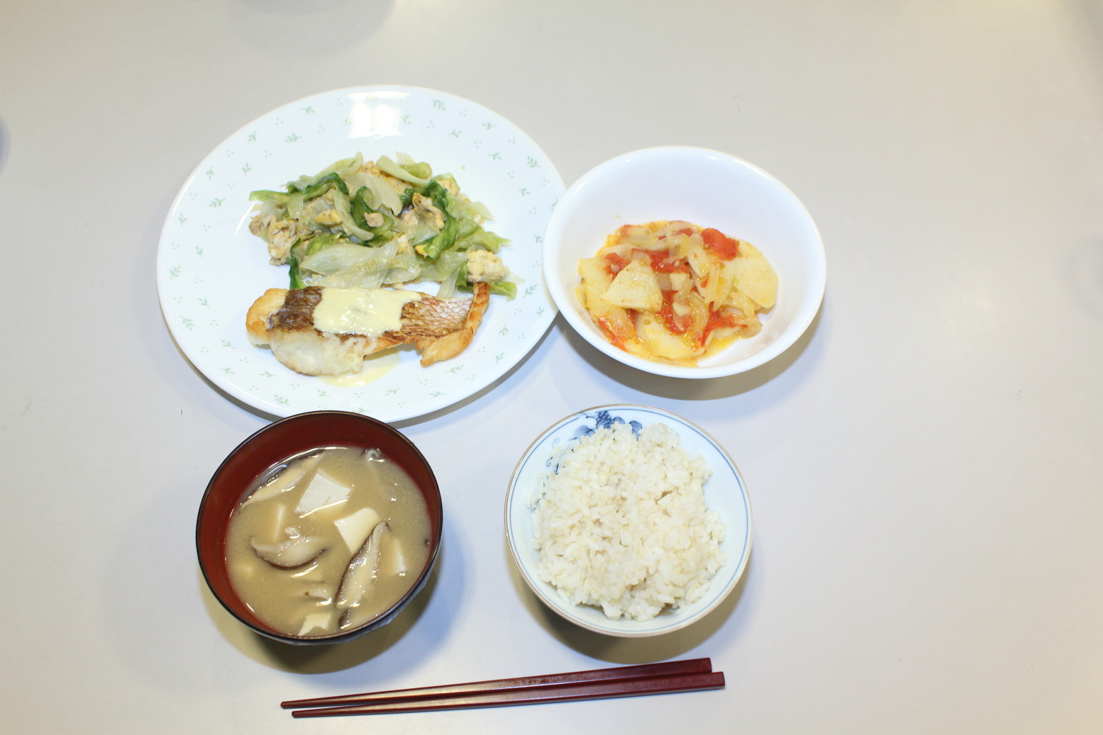 みそ汁を付けて、このような出来上がりになりました。